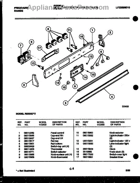 Parts for Frigidaire RE533DH0: 02 - Control Panel Parts