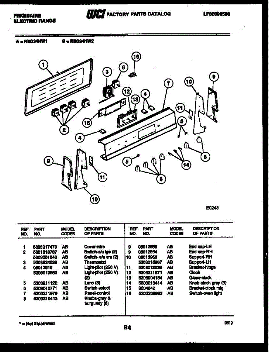 Parts for Frigidaire REG34NW2: 02 - Control Panel Parts