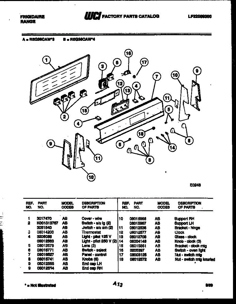 Parts for Frigidaire REG36CAF3: 02 - Control Panel Parts