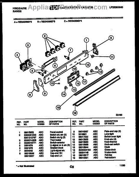 Parts for Frigidaire REG433MDW3: 03 - Control Panel Parts