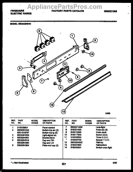Parts for Frigidaire REG435WRW1: 02 - Control Panel Parts