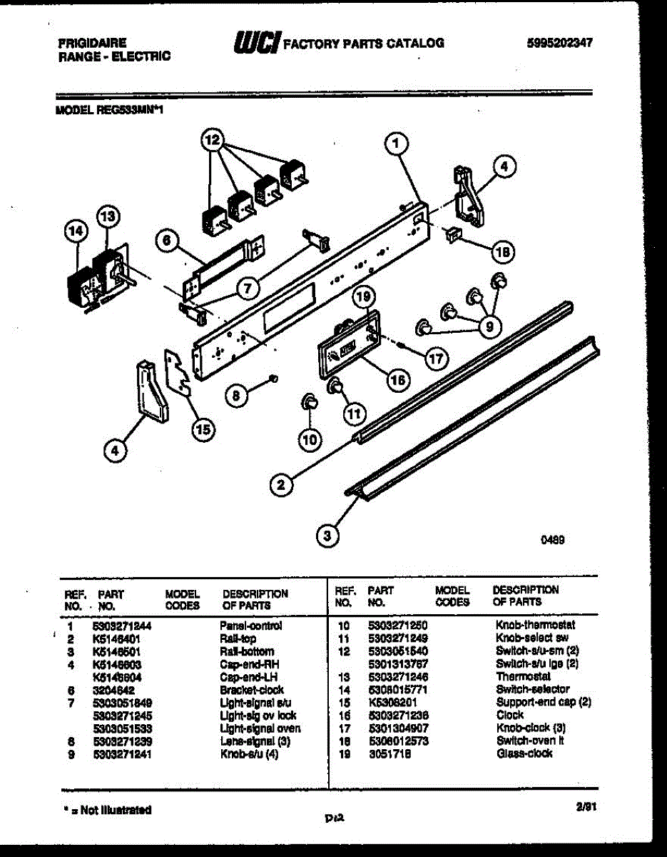 Parts for Frigidaire REG533MNW1: 02 - Control Panel Parts