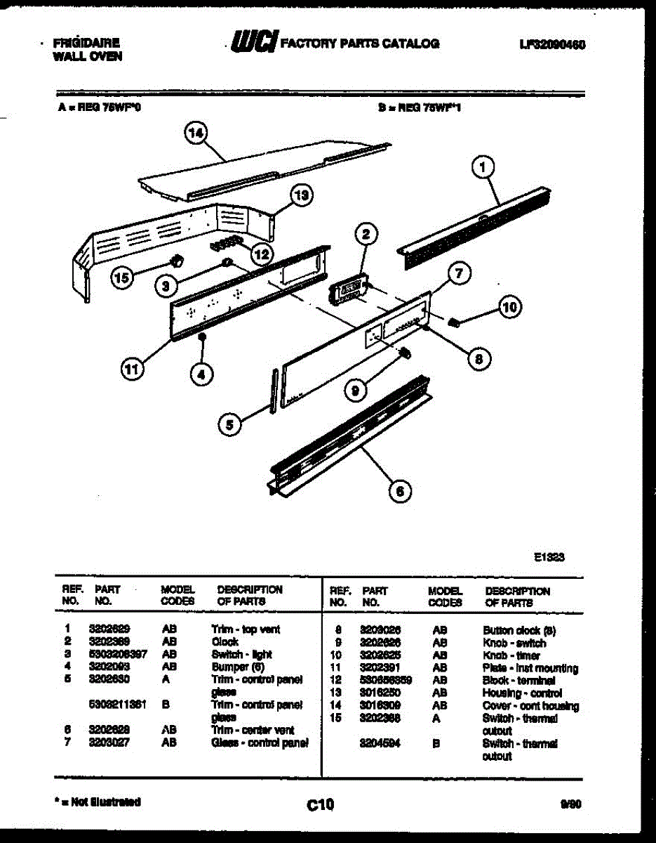 Parts for Frigidaire REG75WFB0: 02 - Control Panel Parts