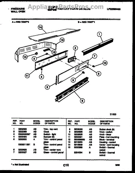 Parts for Frigidaire REG75WFB1: 02 - Control Panel Parts