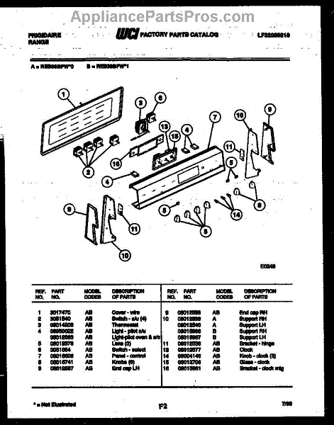 Parts for Frigidaire RES36BFW1: 02 - Control Panel Parts