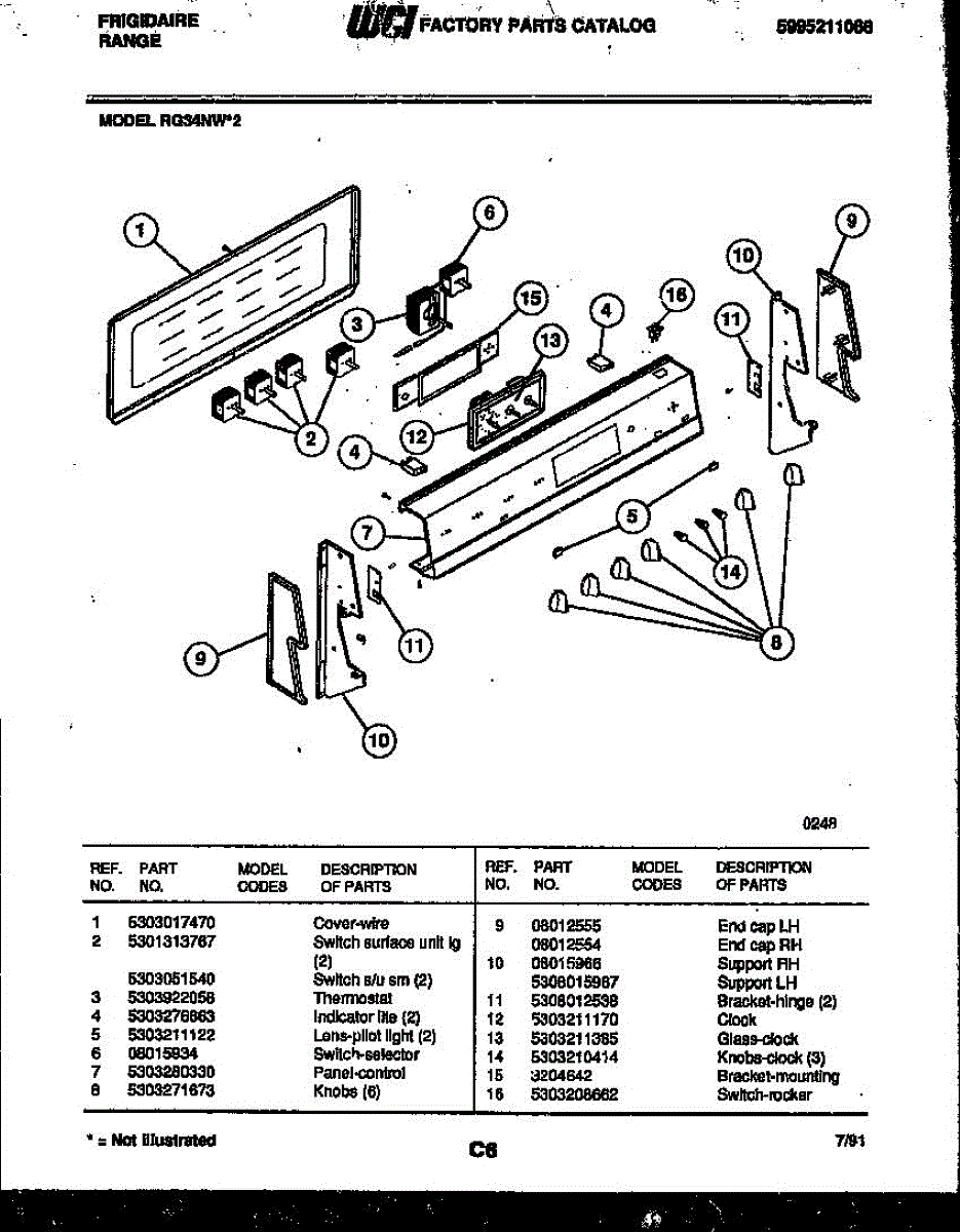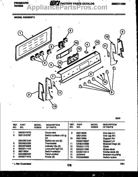 Parts for Frigidaire RG34NL2: 02 - Control Panel Parts