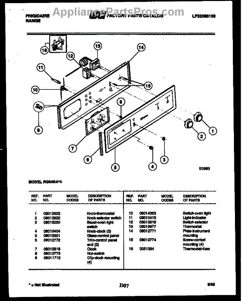 Parts for Frigidaire RG94BAB4: 02 - Control Panel Parts