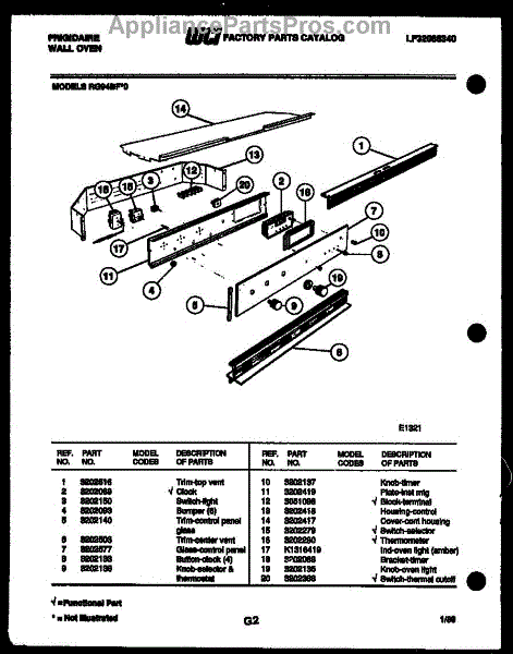 Parts for Frigidaire RG94BFB0: 02 - Control Panel Parts