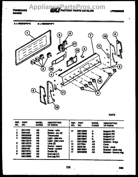 Parts for Frigidaire RS33BFW0: 02 - Control Panel Parts