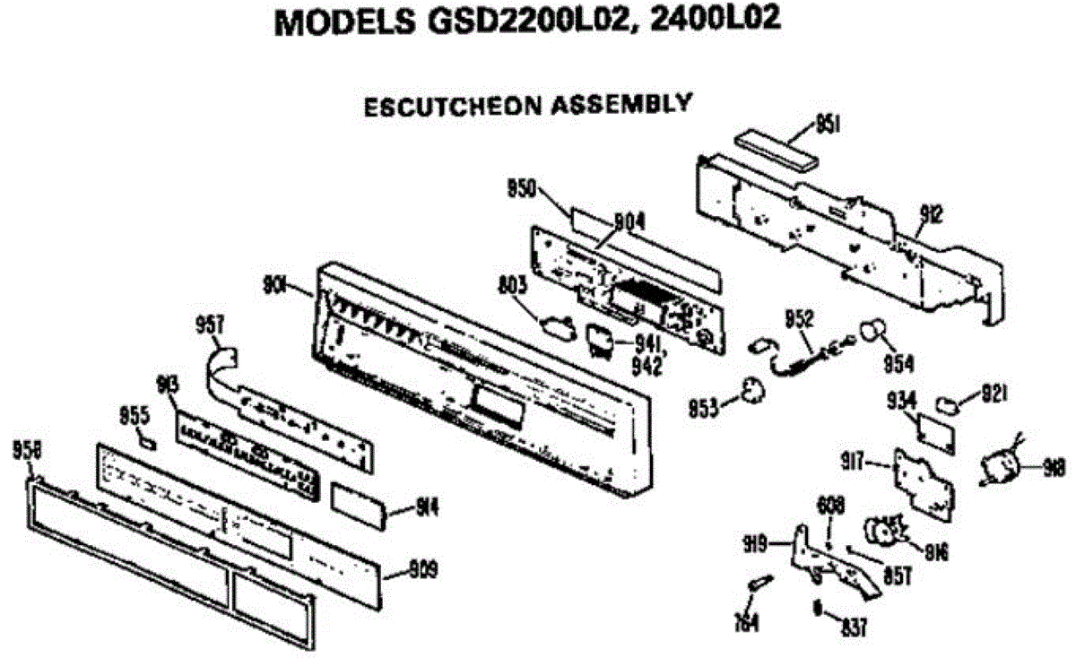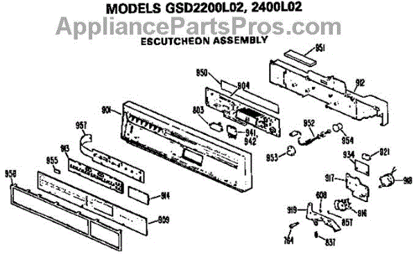 Parts for Ge GSD2200L02BW: Control Panel Parts