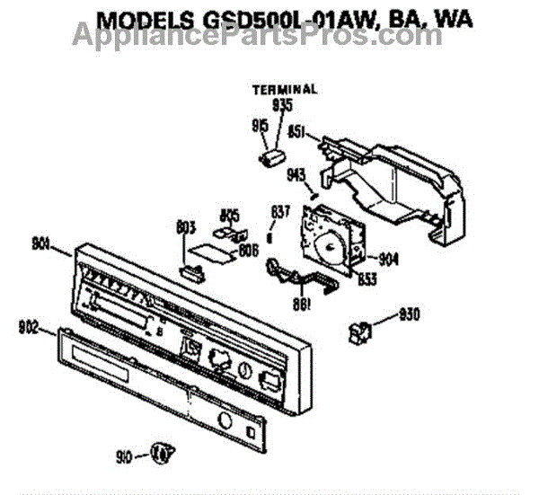 Parts for Ge GSD500L01AW: Control Panel Parts