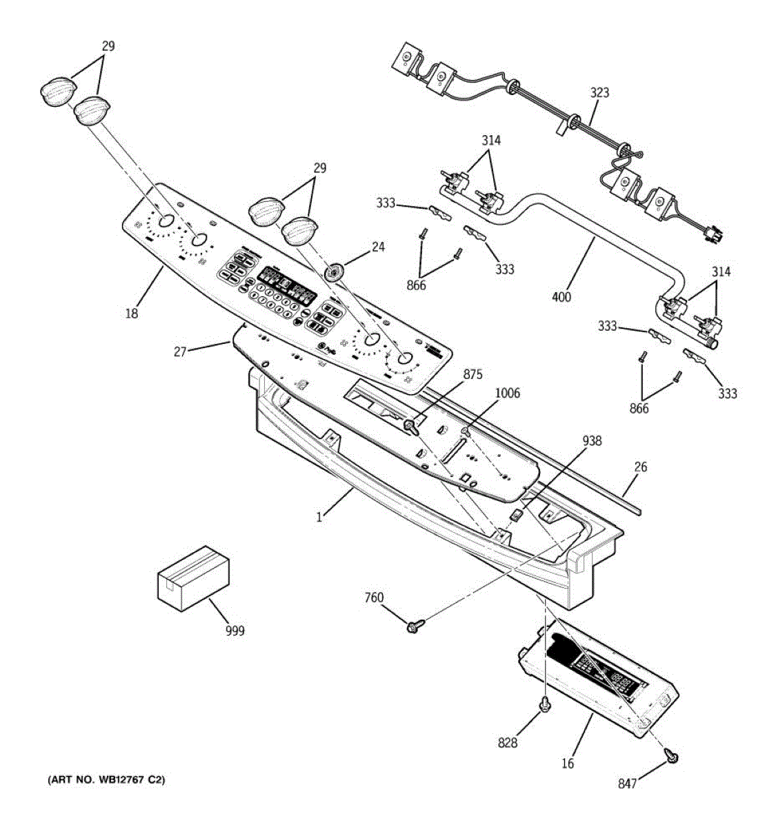 Control panel assembly for electric ranges. Houses touchpad interface and display. Replace if cracked, unresponsive, or display is damaged or illegible.
