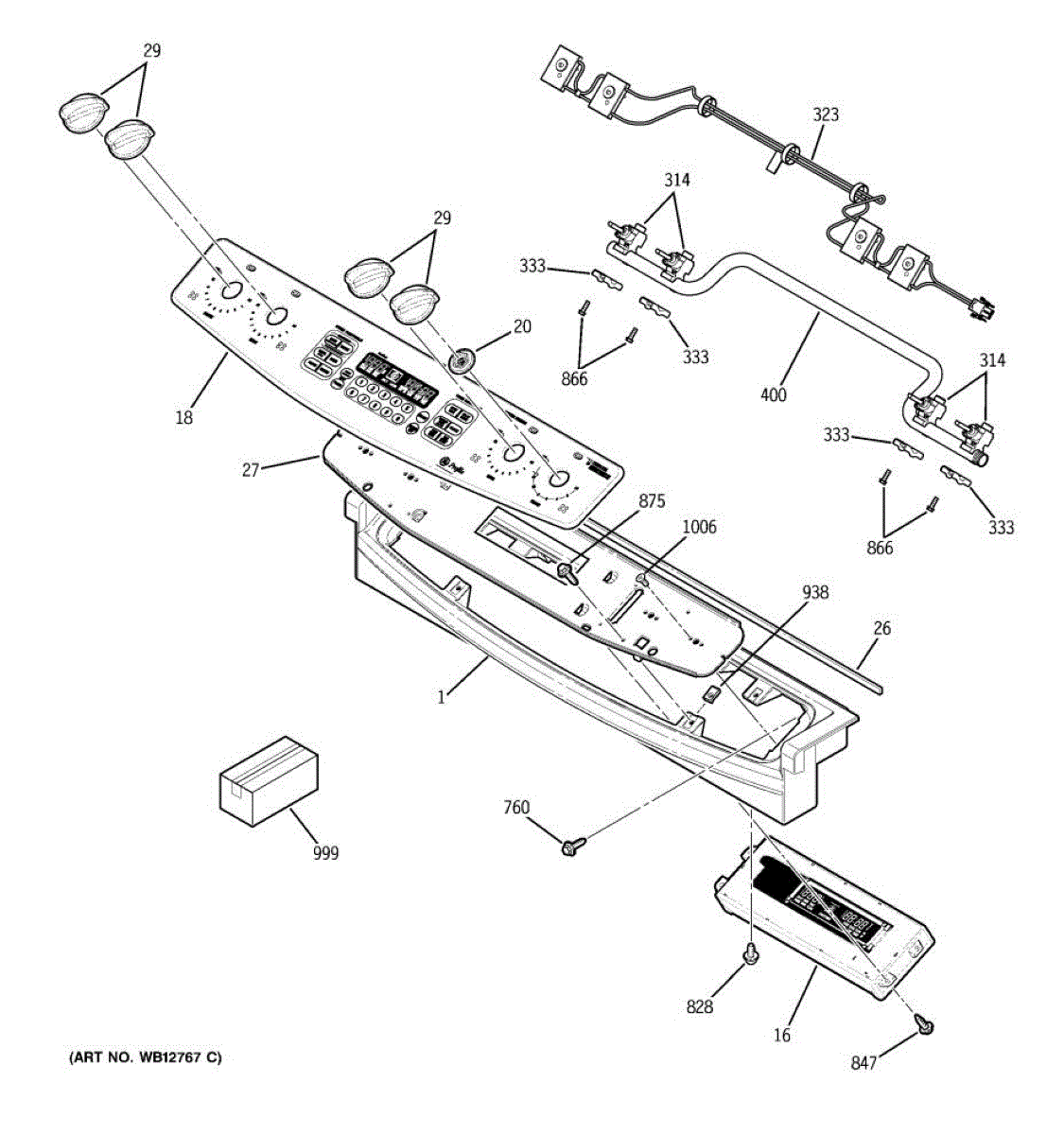 Control panel assembly for electric ranges. Houses touchpad interface and display. Replace if cracked, unresponsive, or display is damaged or illegible.