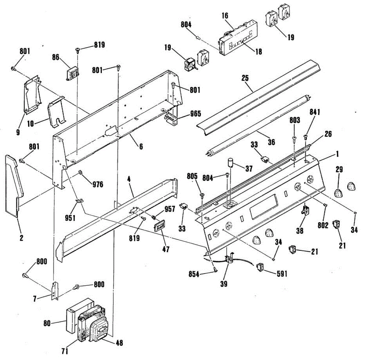 Mounting screw for ranges and ovens. Secures panels, brackets, or internal components. Replace if stripped, missing, or damaged during repair work.