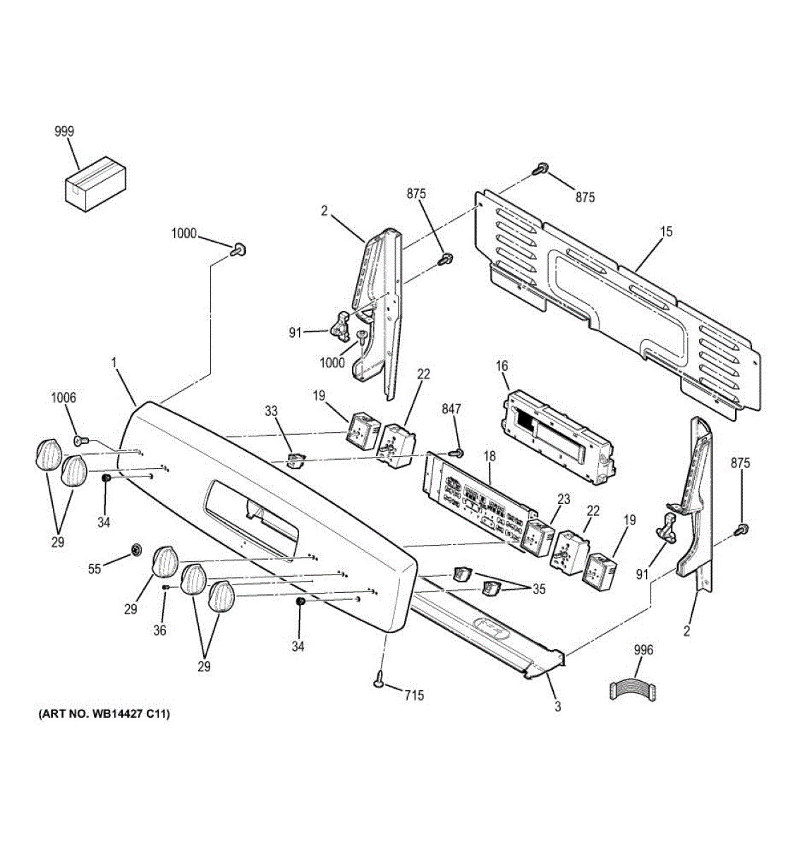 Replacement endcap for your range. This plastic or metal trim piece covers the end of the control panel or cooktop edge. Order a new one if yours is cracked or missing.
