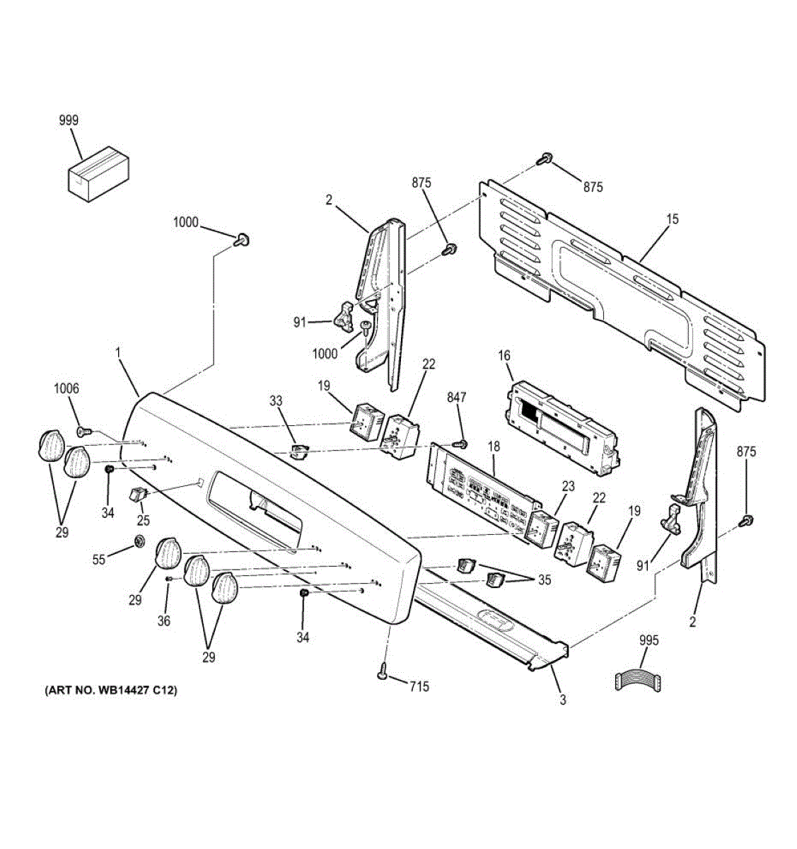 Replacement endcap for your range. This plastic or metal trim piece covers the end of the control panel or cooktop edge. Order a new one if yours is cracked or missing.