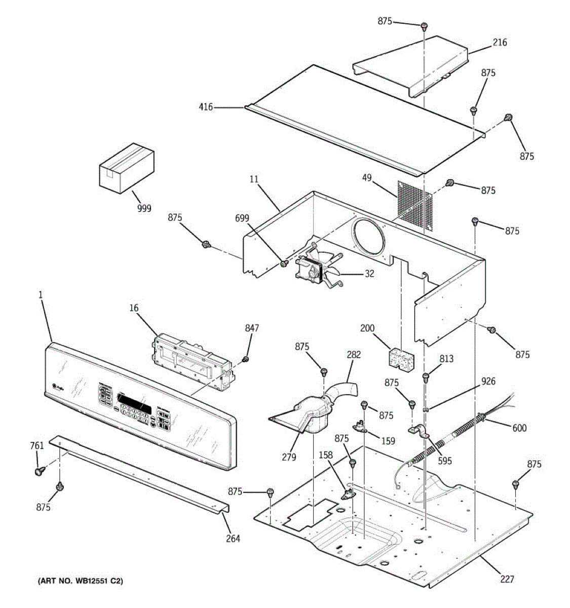 This control cooling fan assembly circulates air through the oven's control compartment to remove heat. By keeping the console and electronics cool during and after cooking, it helps prevent overheating and protects sensitive components.