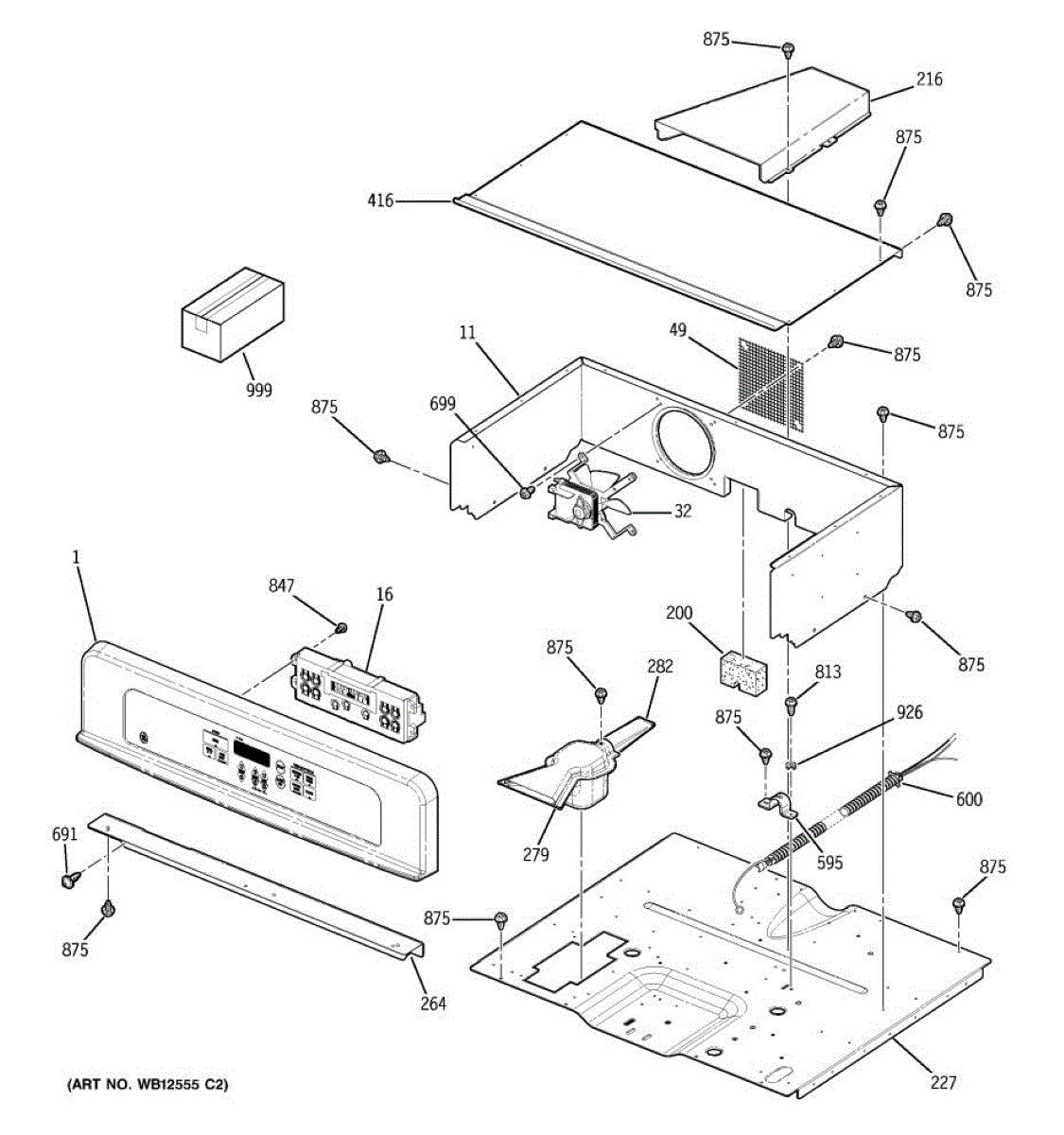 This control cooling fan assembly circulates air through the oven's control compartment to remove heat. By keeping the console and electronics cool during and after cooking, it helps prevent overheating and protects sensitive components.