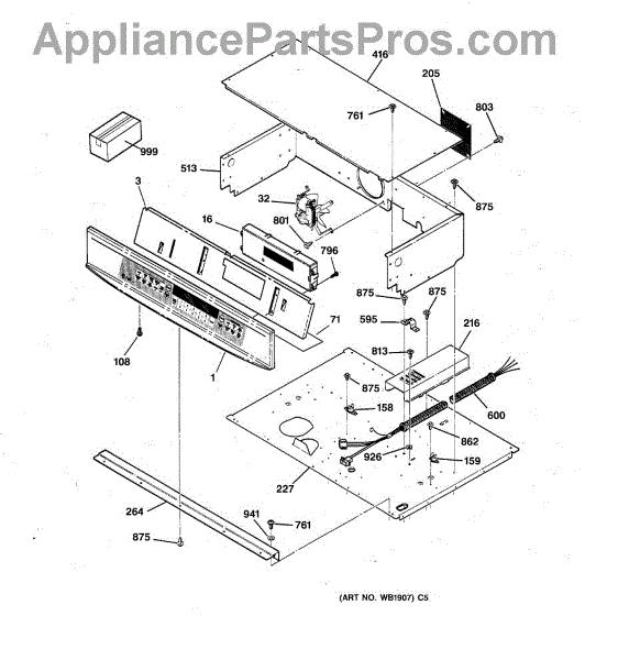 This convection fan assembly circulates heated air inside the oven cavity for more even baking and roasting. Replacing a worn or noisy fan restores proper airflow and helps maintain stable temperatures during convection cooking.