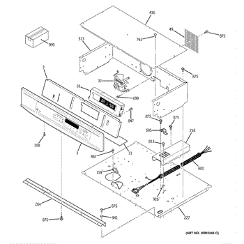 This convection fan assembly circulates heated air inside the oven cavity for more even baking and roasting. Replacing a worn or noisy fan restores proper airflow and helps maintain stable temperatures during convection cooking.
