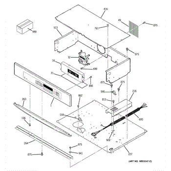 This convection fan assembly circulates heated air inside the oven cavity for more even baking and roasting. Replacing a worn or noisy fan restores proper airflow and helps maintain stable temperatures during convection cooking.