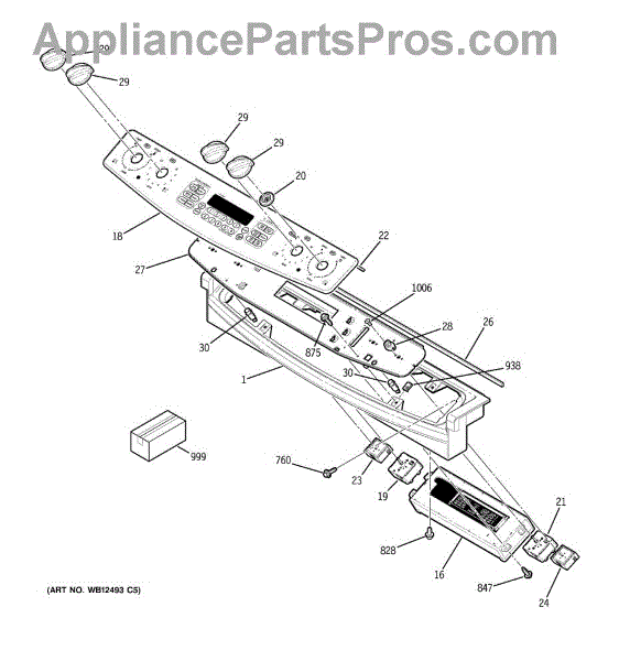 Control panel assembly for electric ranges. Houses touchpad interface and display. Replace if cracked, unresponsive, or display is damaged or illegible.