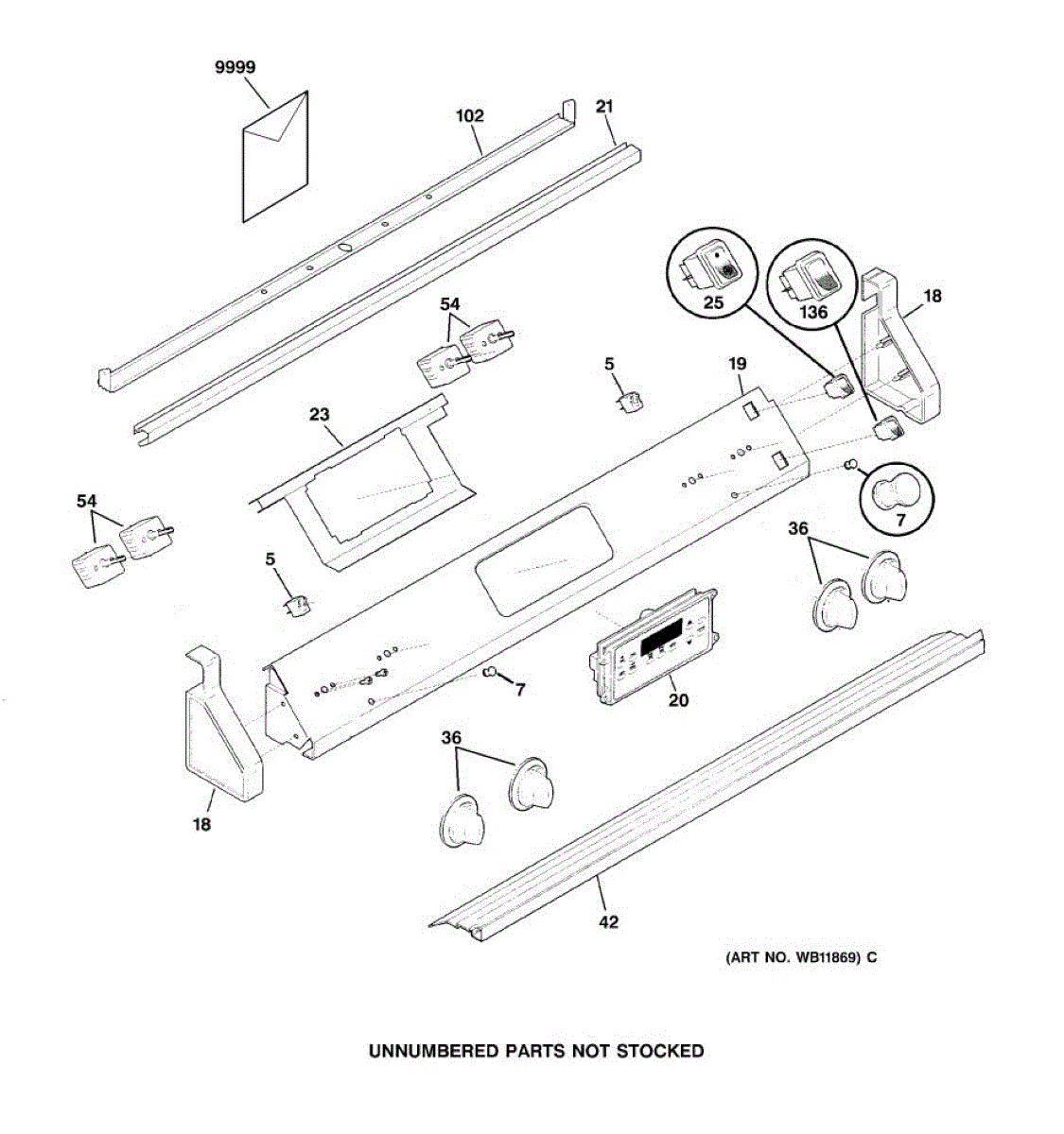 Parts for Ge JDP40WB1WW: 01 - Control Panel Parts