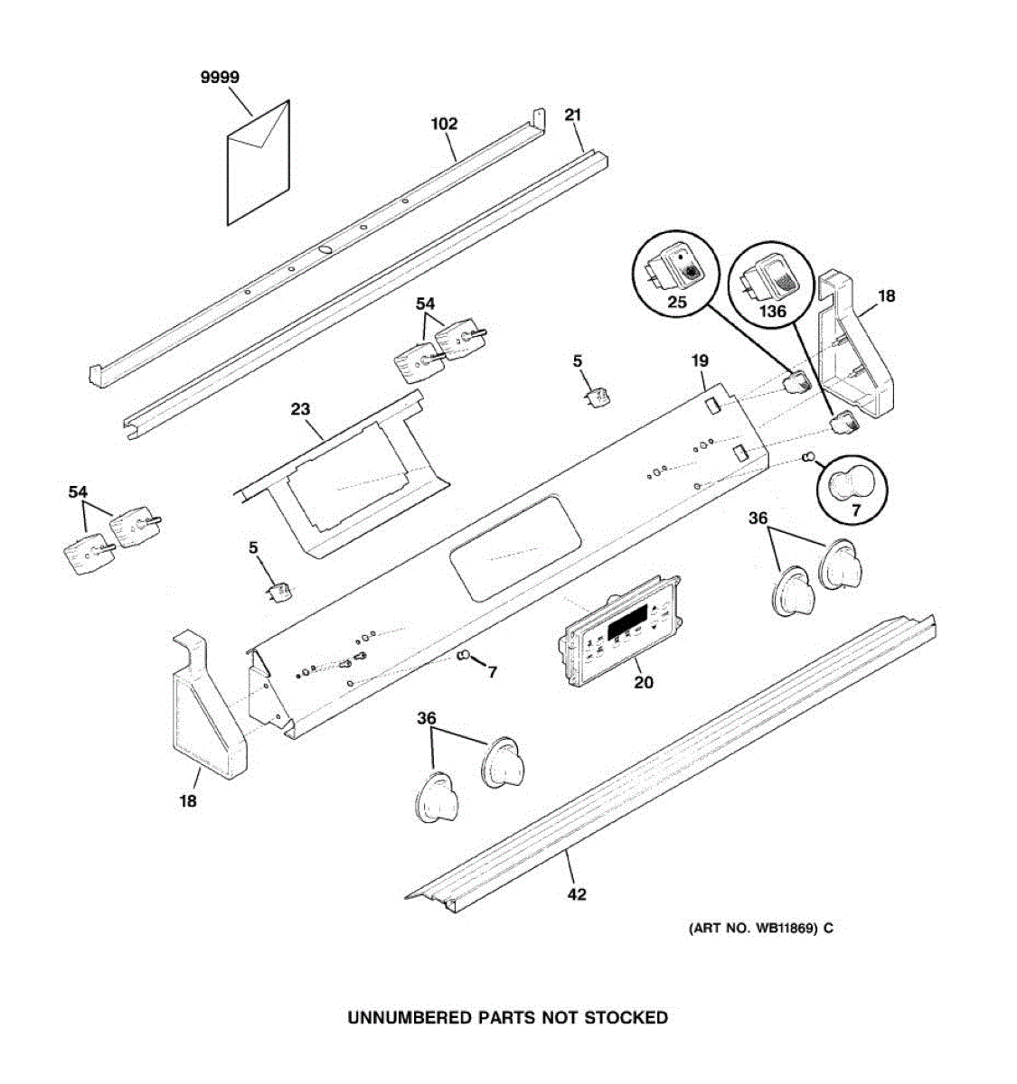 Parts for Ge JDP40WB2WW: 01 - Control Panel Parts
