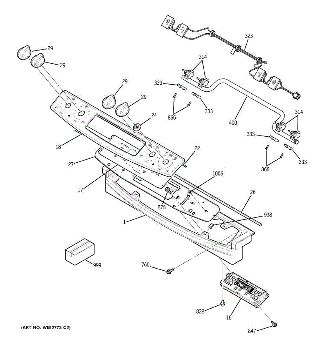 Control panel assembly for electric ranges. Houses touchpad interface and display. Replace if cracked, unresponsive, or display is damaged or illegible.