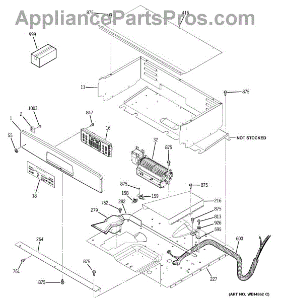 The Faceplate is an OEM part for GE ovens. It is mounted on the front of the oven, covering the control panel area where the user interacts with the oven's settings and functions.