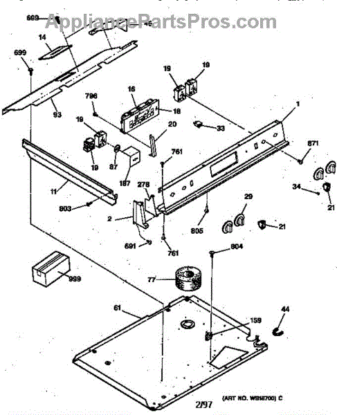 Parts for Ge JSP39WV2WW: Control Panel Parts
