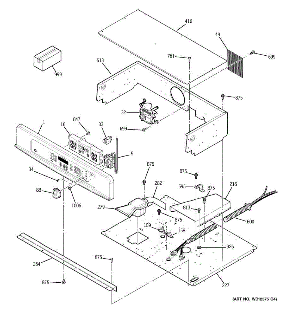 Oven vent box assembly that routes hot air and steam from the cooking cavity. Replace if cracked, damaged, or missing to restore proper ventilation.
