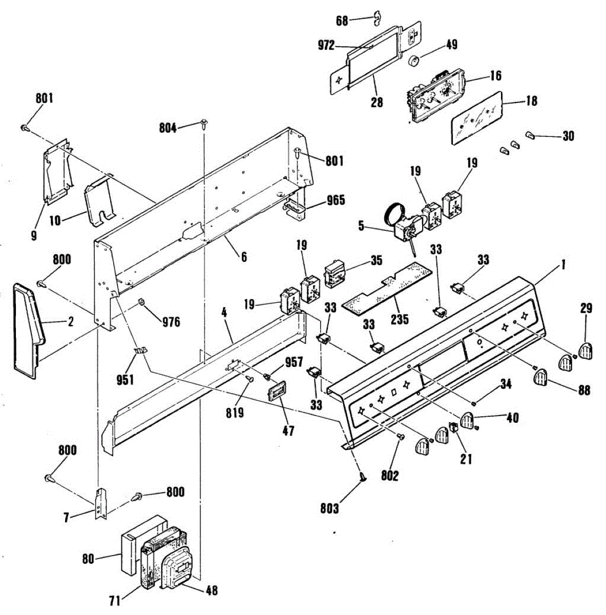Mounting screw for ranges and ovens. Secures panels, brackets, or internal components. Replace if stripped, missing, or damaged during repair work.