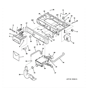 This dispenser harness is the factory wiring assembly that connects the dispenser controls to power and dispenser components, restoring reliable electrical connections for proper dispenser operation. Use when dispenser switches or lights fail to respond. What it does: