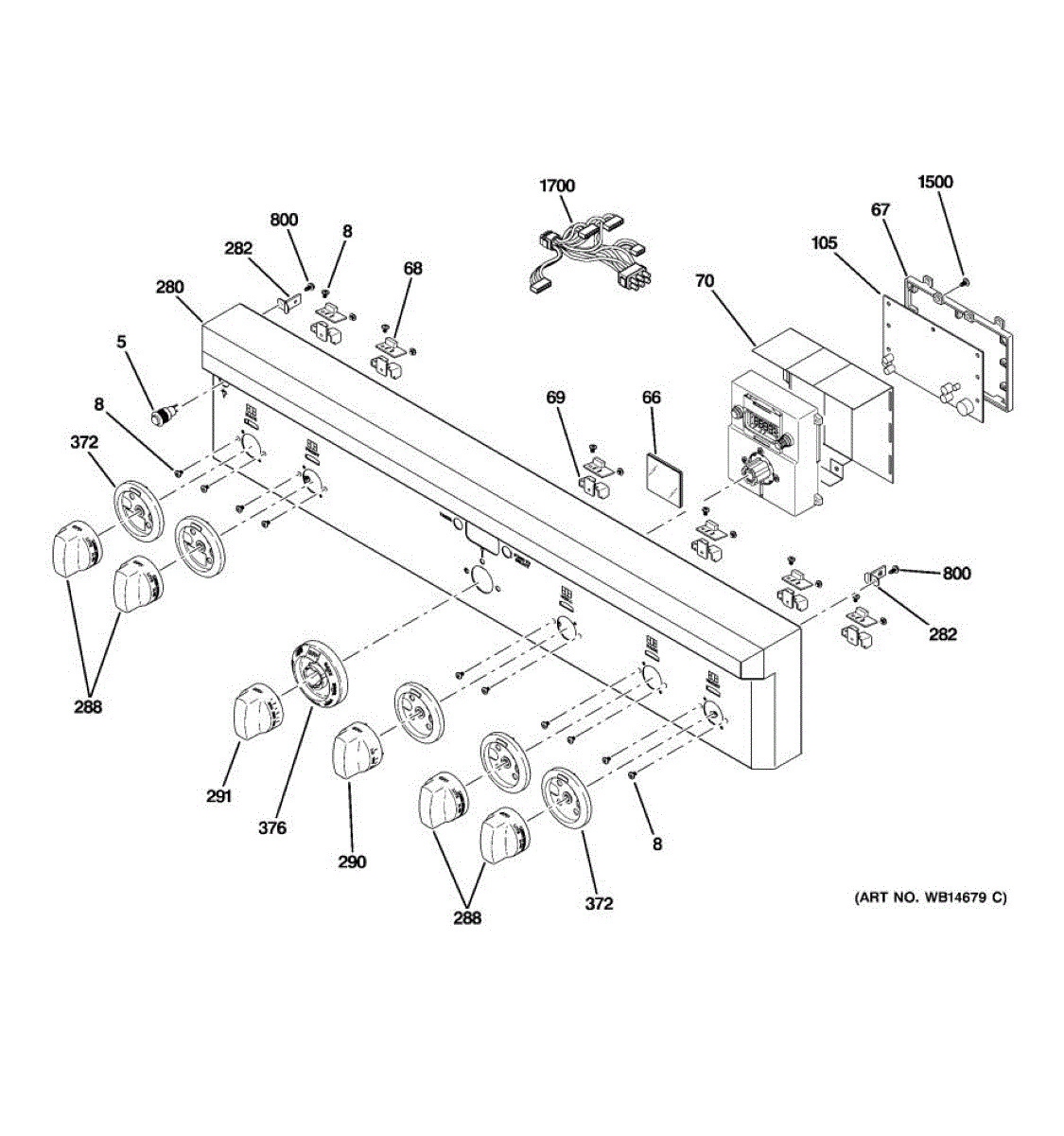 Front trim bezel assembly that covers and protects the oven control area. Replaces a cracked, dented, or worn bezel to restore your range's appearance.