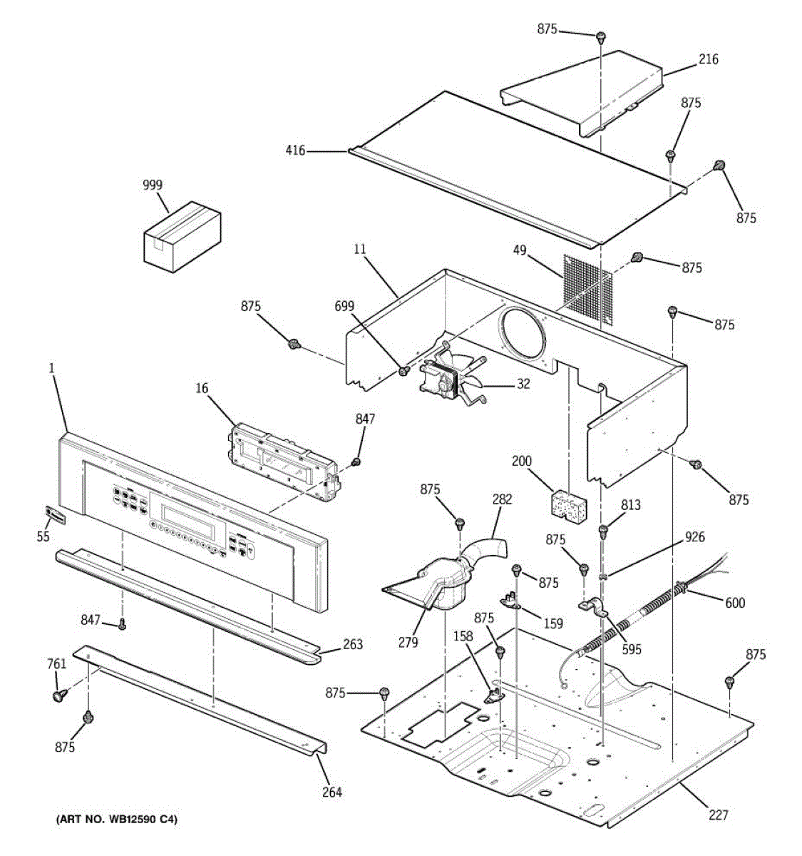 This control cooling fan assembly circulates air through the oven's control compartment to remove heat. By keeping the console and electronics cool during and after cooking, it helps prevent overheating and protects sensitive components.