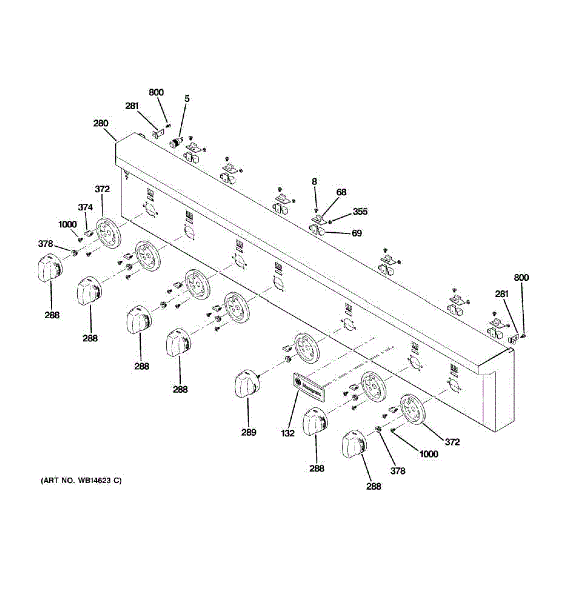 Control panel mounting bracket for gas ranges and cooktops. Secures the control panel assembly to the frame. Replace if bent, cracked, or broken.