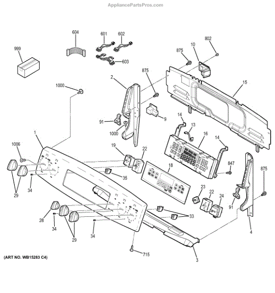 Control panel housing assembly for cooktops and ranges. Replaces cracked, broken, or damaged housing that protects control interface components.