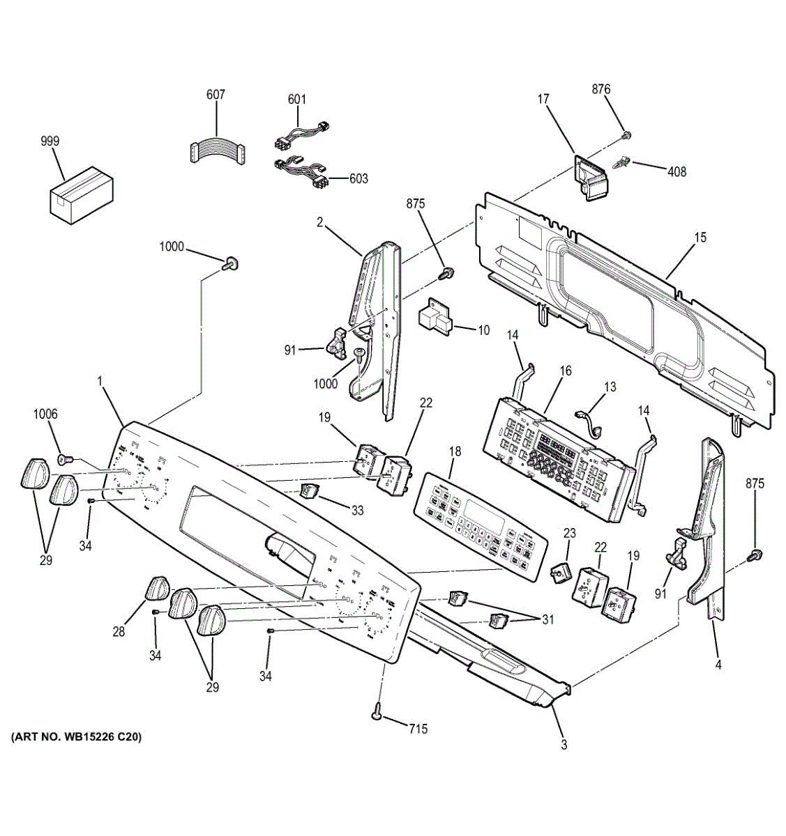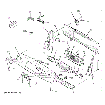 Control panel housing assembly for cooktops and ranges. Replaces cracked, broken, or damaged housing that protects control interface components.