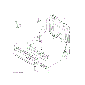 The control panel End Plate (Left) is an OEM part for GE electric ranges. It forms a barrier along the back left edge of the control panel area providing structural reinforcement and protection.