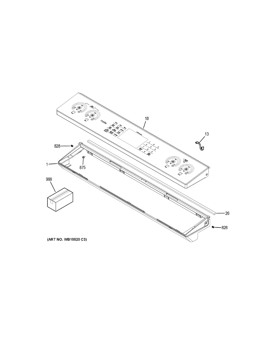 Control panel overlay for electric ranges. Covers and refreshes the front control panel surface. Replace if cracked, peeling, faded, or scratched.