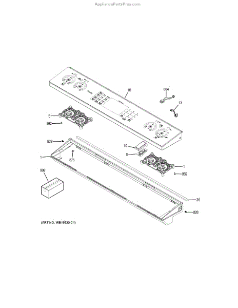 The Control Panel Overlay is an OEM part for GE electric ranges. It serves as the decorative protective covering installed over the front control console interface.