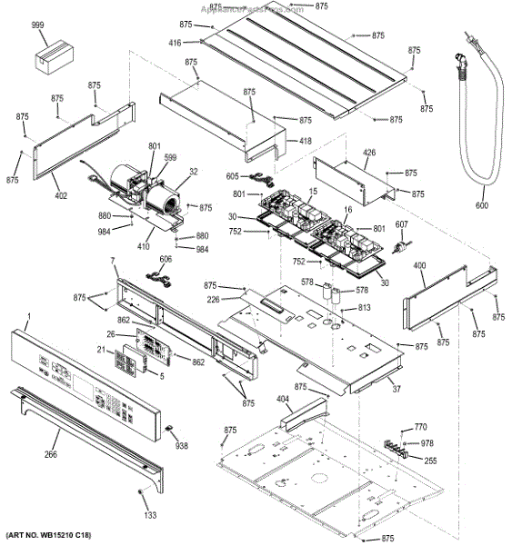 The Control Board and Overlay Assembly is an OEM component specifically designed for GE ovens. It houses electronic control boards along with an overlay screen and touch controls. This assembly acts as the "brain" of the oven, processing commands and regulating functions through its control boards and interfaces.