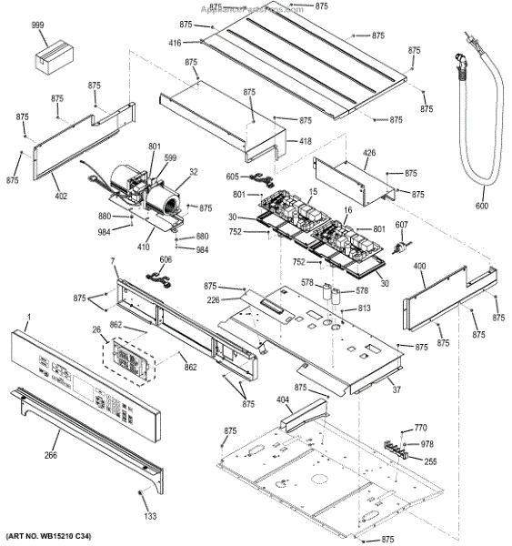 The Control Board and Overlay Assembly is an OEM component specifically designed for GE ovens. It houses electronic control boards along with an overlay screen and touch controls. This assembly acts as the "brain" of the oven, processing commands and regulating functions through its control boards and interfaces.