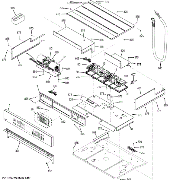 The Control Board and Overlay Assembly is an OEM component specifically designed for GE ovens. It houses electronic control boards along with an overlay screen and touch controls. This assembly acts as the "brain" of the oven, processing commands and regulating functions through its control boards and interfaces.
