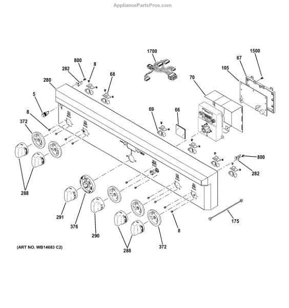 This control panel and rail assembly replaces the front console and mounting rail for the oven/range control area, restoring a secure, finished console and support for the control components. Fits as a direct replacement for damaged or bent panels. What it does