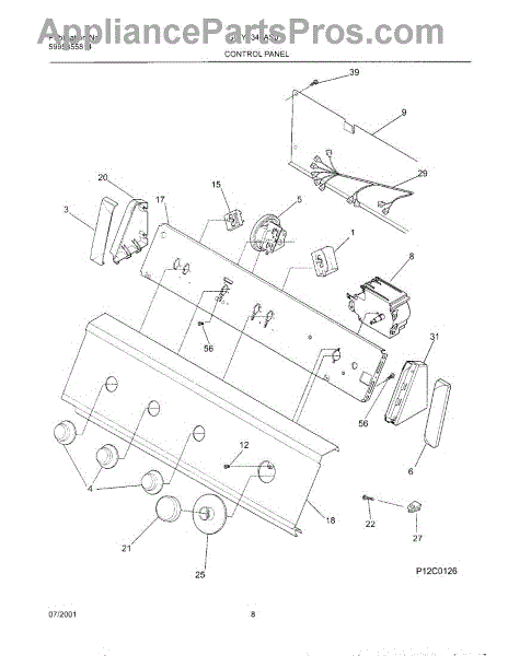 The Timer Knob Assembly is an OEM replacement part for Frigidaire electric dryers. This assembly incorporates the timer dial, stem, and mounting components that allow users to set desired drying periods.