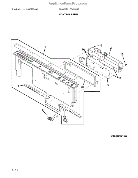 This console assembly is the external control housing that secures and organizes the appliance's controls and display, restoring a finished appearance and reliable operator interface. It replaces a cracked, loose, or damaged control console. What it does: