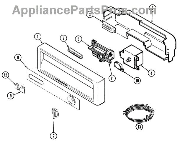 This door switch detects when the dishwasher door is fully closed and latched. Replacing a worn or intermittent switch restores reliable start/stop operation and ensures the safety interlock cuts power whenever the door is opened.