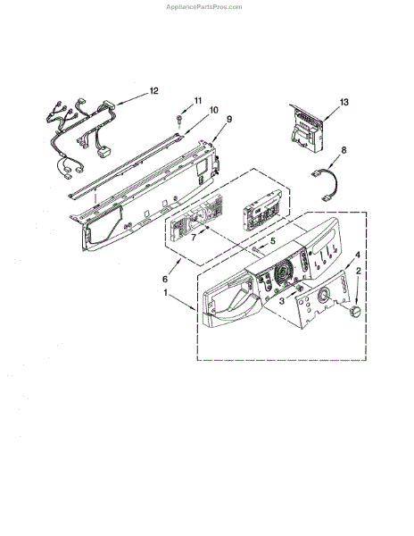 Complete wire harness assembly for washers. Routes electrical connections between control boards, sensors, and components. Replaces damaged, frayed, or broken harnesses with cracked connectors.